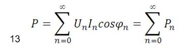 對于周期非正弦交流電,將周期交變電壓電流進行傅里葉變換,展開為傅里葉級數,有功功率計算公式還可表示為: